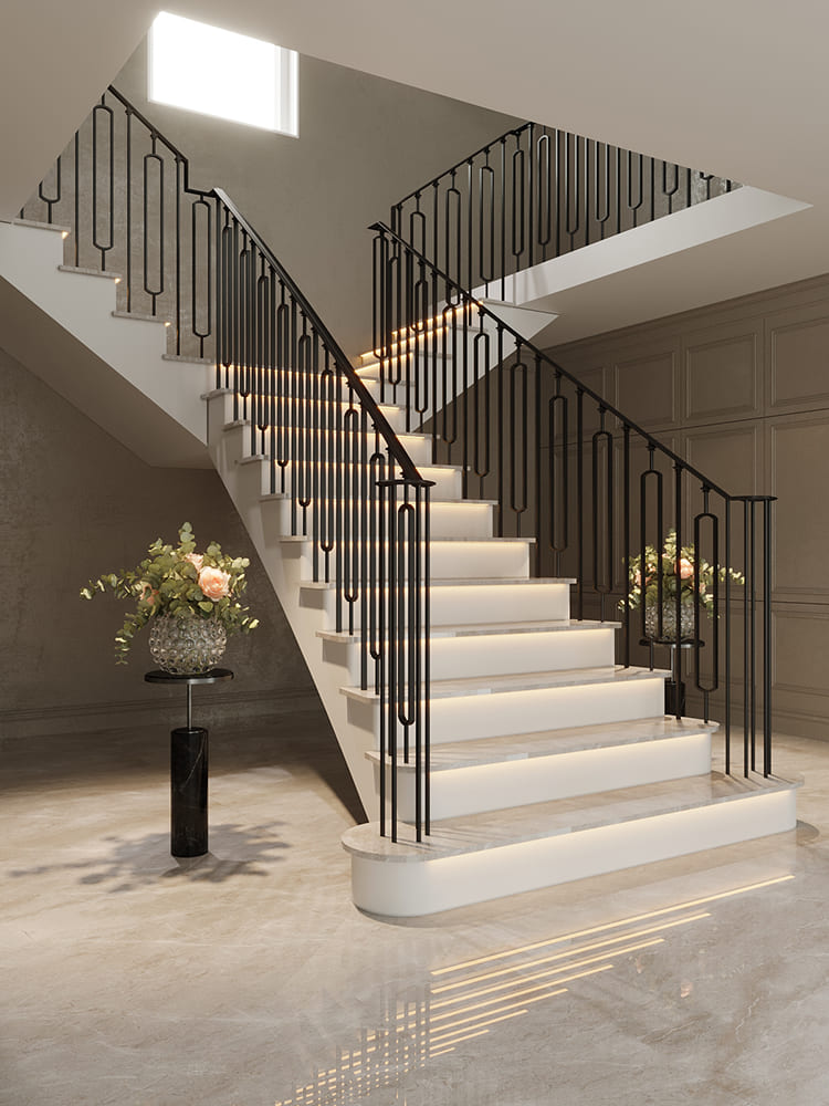 The Barnes The Barnes staircase was envisioned as a focal point of modern luxury, designed to embody a sense of contemporary elegance and comfort. This project set out to redefine